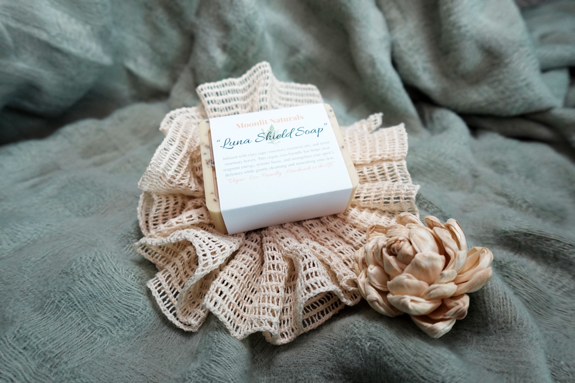 For spiritual cleansing, use Luna Shield Handmade Natural Soap as part of your moon ritual or energetic practice. As you wash, say or think: